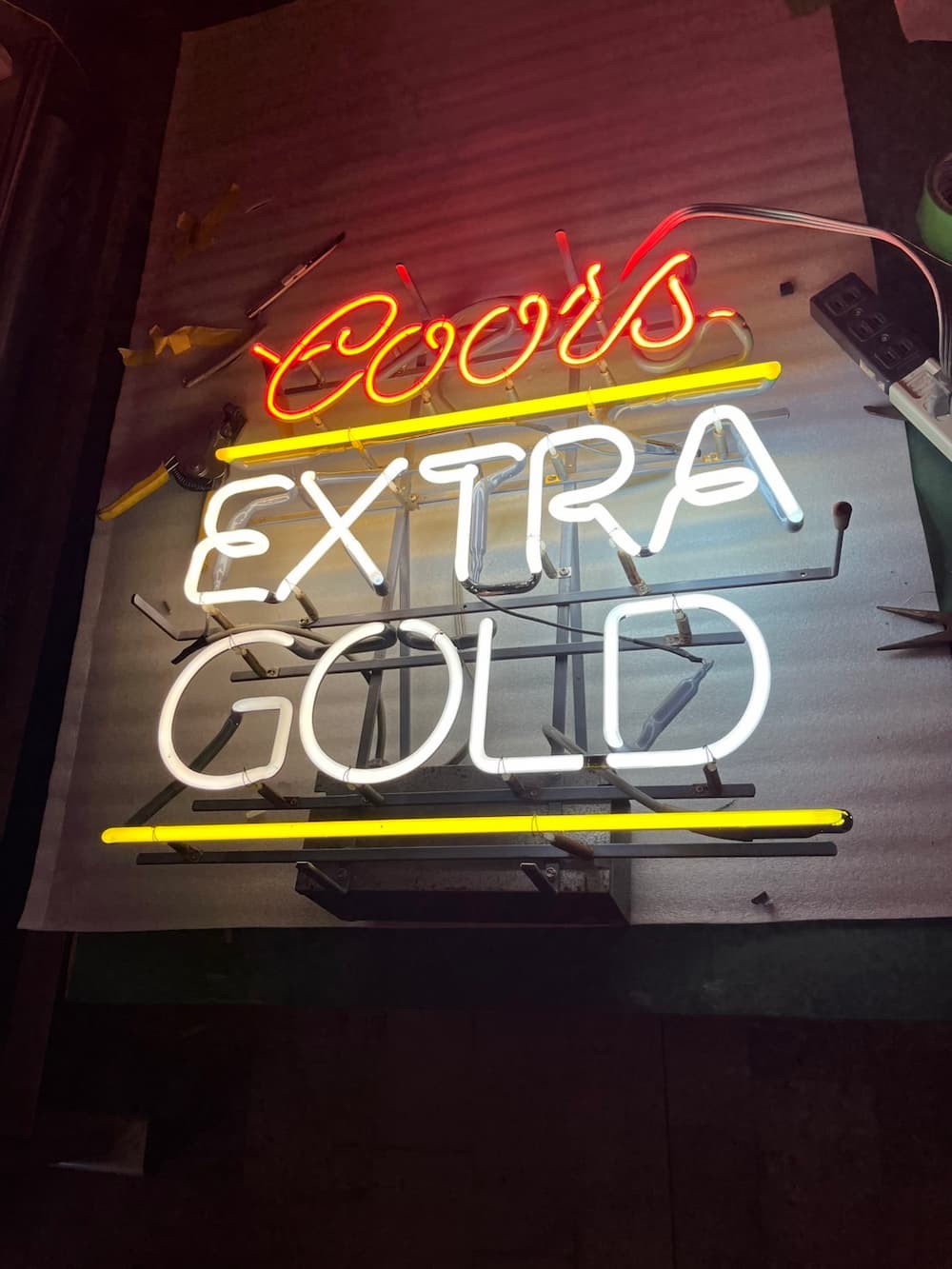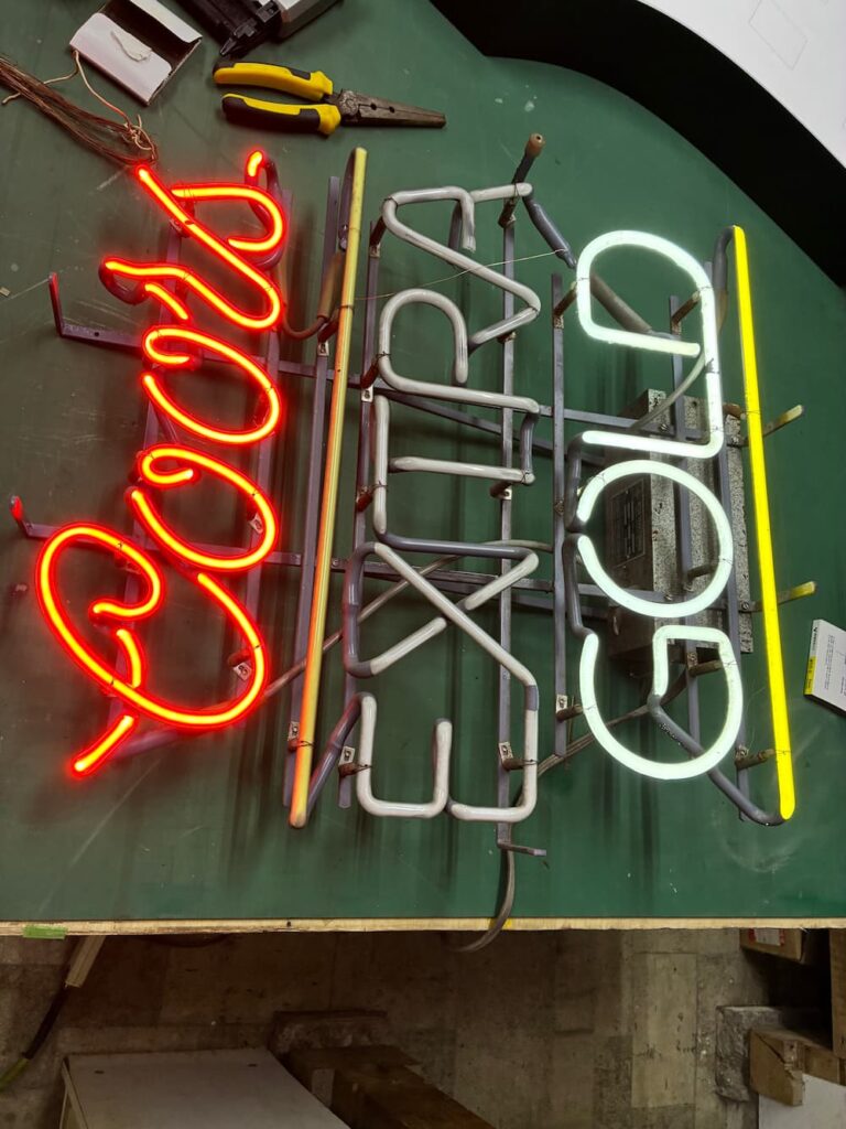 [神奈川県横須賀市]ガレージ看板 光る文字(ネオン管) 投稿日 2025年11月11日 更新日 2025年11月14日 著者 rgb-sign カテゴリー ネオン 顧客名 木村 様 地域 神奈川県横須賀市 看板の種類 ネオン看板 神奈川県横須賀市で割れてしまったネオン看板を修理いたしました。 修理前 故障部分 修理後