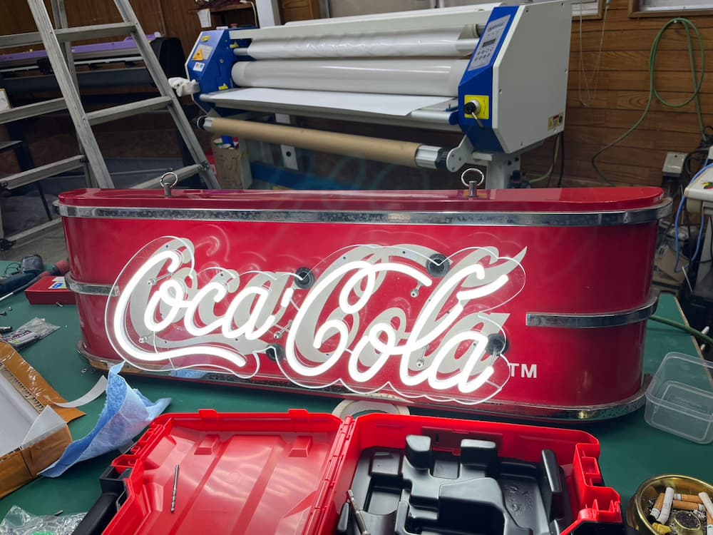 [神奈川県逗子市] ガレージ看板 ネオン(LEDチューブ) 投稿日 2025年11月19日 著者 rgb-sign カテゴリー ネオン 顧客名 佐久間不動産 様 地域 神奈川県逗子市 看板の種類 ガレージ看板、ネオン看板、(LEDチューブライト化) 神奈川県逗子市でガレージ看板を製作いたしました。 修理前(ガラス製) 採寸中 完成品
